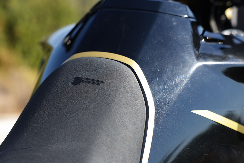 Το βάρος της μοτοσυκλέτας είναι στα 241 κιλά — αρκετά “βαρύ” για την κατηγορία, στατικά θα αισθανθείς τον όγκο και το βάρος της και ιδιαίτερα όταν προσπαθήσεις να την σηκώσεις στο διπλό σταντ, όμως η χαμηλή σέλα και η θέση οδήγησης που σε τοποθετεί «μέσα» στη μοτοσυκλέτα σε αφήνει να πατήσεις με σιγουριά και τα δύο πόδια στο έδαφος ώστε να επιχειρείς χωρίς πρόβλημα στατικές μετακινήσεις και μανούβρες. Η σέλα είναι καλοσχεδιασμένη, ποιοτική με λίγο όμως αφρώδες εσωτερικό, έχει πολύ καλό αντιολισθητικό κάλυμμα και ο συνεπιβάτης κάθεται άνετα στο κομμάτι που του αναλογεί.