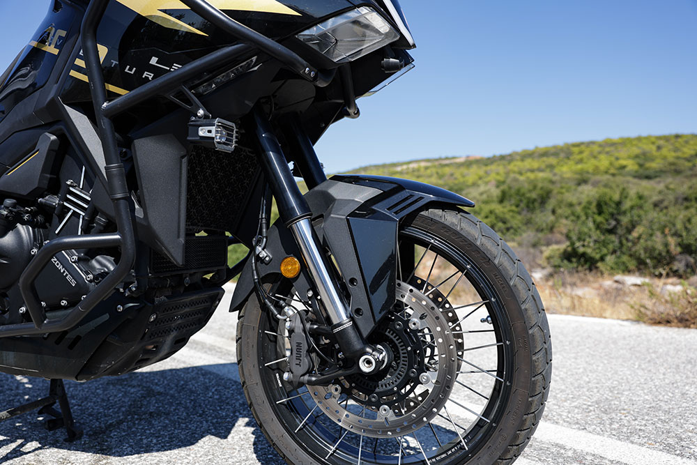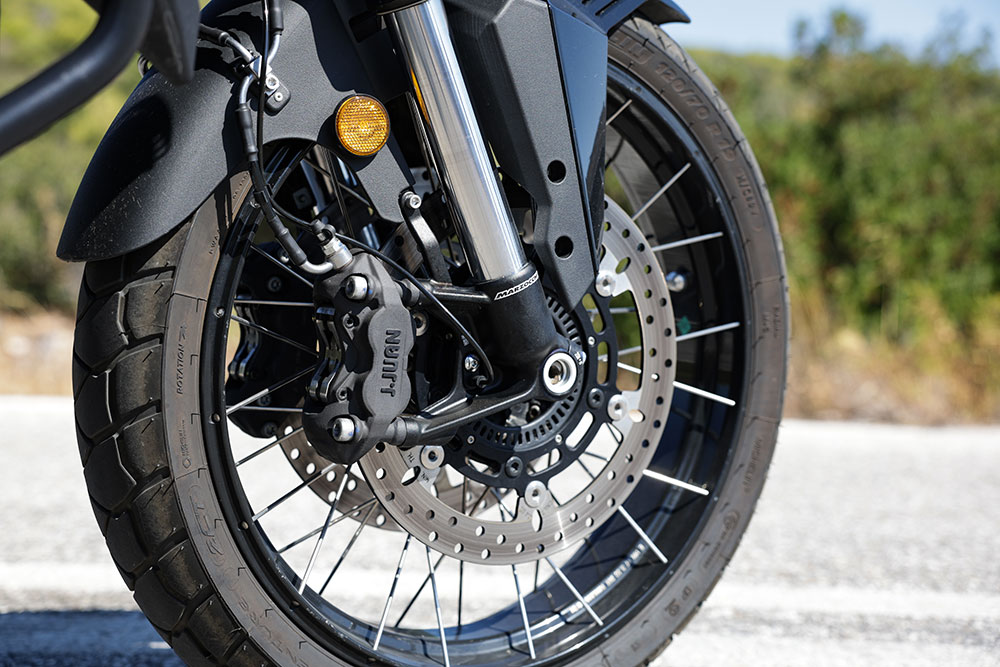 Οι ακτινωτοί τροχοί έχουν τις κλασικές adventure διαστάσεις 19-17 με τα Michelin Anakee Adventure να έχουν επιλεχθεί ως ελαστικά πρώτης τοποθέτησης καλύπτοντας όλα τα σενάρια σε άσφαλτο και χώμα. Το ρεζερβουάρ έχει χωρητικότητα 22 λίτρα προσφέροντας μεγάλη “αυτονομία” για ταξιδιωτική χρήση.