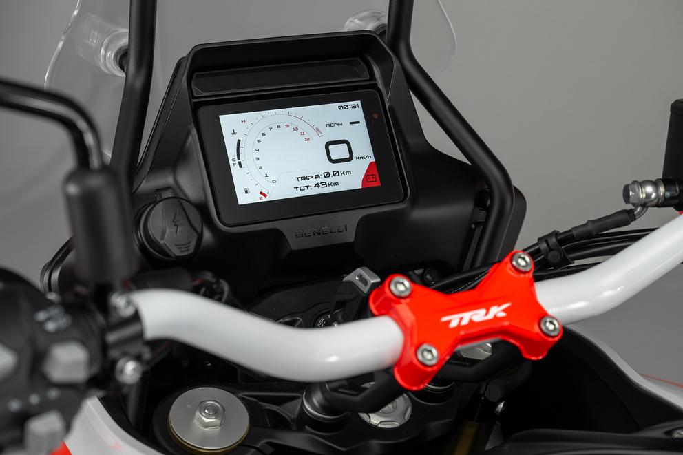 Η νέα TRK αντλεί τη σχεδιαστική της ταυτότητα από τα μεγαλύτερα μοντέλα της Benelli, την TRK 702 και την TRK 902. Οι γραμμές της πλέον είναι πιο καθαρές, ομαλές και σύγχρονες, με όλες τις επιφάνειες να «δένουν» μεταξύ τους χωρίς έντονες ενώσεις ή ανεπιθύμητα κοψίματα. Το άνω τμήμα του ρεζερβουάρ ενώνεται αρμονικά με το μπροστινό ρύγχος και τα πλαϊνά, σχηματίζοντας μια ανανεωμένη TRK σιλουέτα που δείχνει πιο ώριμη και επιβλητική. Ακόμη και τα στενά πλαϊνά κάτω από τη σέλα εναρμονίζονται με τη συνολική αισθητική, βελτιώνοντας παράλληλα την εργονομία και την πρόσβαση για τον αναβάτη. Με ύψος σέλας στα 825 χιλιοστά, η μοτοσυκλέτα παραμένει φιλική σε μεγάλο εύρος αναβατών και κατάλληλη για καθημερινή χρήση αλλά και ταξίδια.