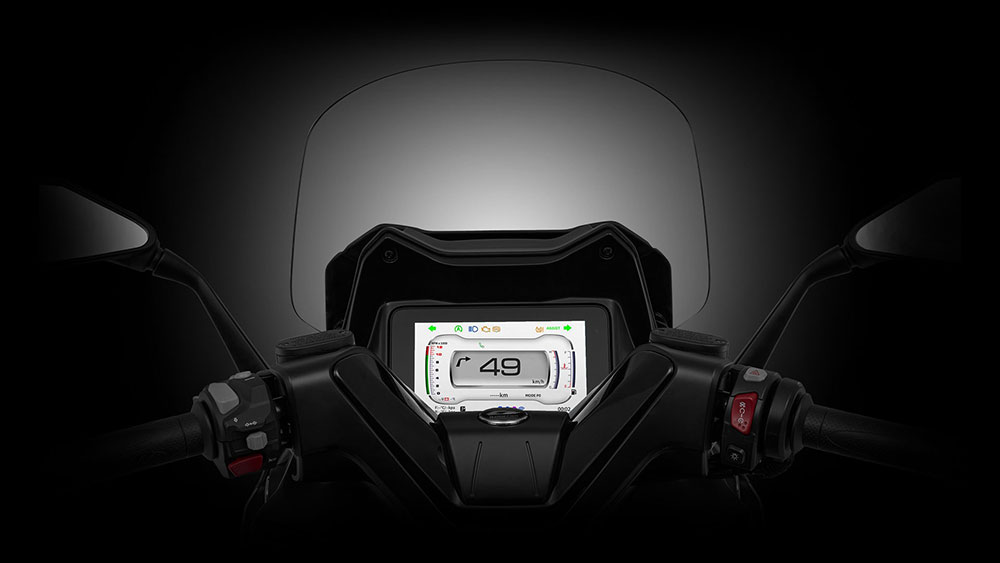 Στο κέντρο του cockpit δεσπόζει ο μεγάλος TFT πίνακας 7 ιντσών, με δύο διαφορετικά interfaces (street & sport), επιτρέποντας στον αναβάτη να επιλέγει τον τρόπο προβολής των ενδείξεων. Ο πίνακας προβάλλει με ευκρίνεια όλες τις βασικές πληροφορίες, ενώ μέσω του TPMS ενημερώνει για τη θερμοκρασία και την πίεση των ελαστικών. Με τη βοήθεια του διπλού Bluetooth (master & slave) και του WiFi, ο αναβάτης έχει πρόσβαση σε κλήσεις, turn-by-turn πλοήγηση και δυνατότητα mirroring.