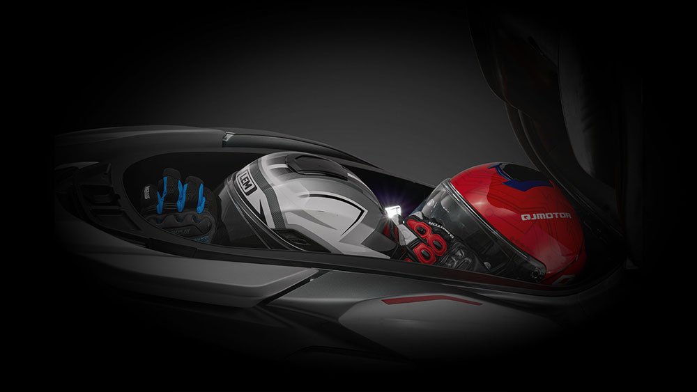 Η καθημερινή χρήση γίνεται πιο εύκολη χάρη στην ηλεκτρικά ρυθμιζόμενη ζελατίνα, που προσαρμόζεται με το πάτημα ενός κουμπιού, προσφέροντας αποτελεσματική προστασία σε κάθε ταχύτητα. Κάτω από τη σέλα υπάρχει ένας φωτιζόμενος αποθηκευτικός χώρος που μπορεί να φιλοξενήσει δύο κράνη και διάφορα προσωπικά αντικείμενα, ενώ η εργοστασιακή σχάρα αποσκευών διευρύνει τις δυνατότητες μεταφοράς. Επιπλέον, ένα ντουλαπάκι στο εσωτερικό τμήμα της ποδιάς με διπλή θύρα φόρτισης (USB Type A & Type-C) επιτρέπει τη φόρτιση συσκευών κατά τη διαδρομή. Το keyless σύστημα, ο κεντρικός διακόπτης που επιτρέπει το εύκολο ξεκλείδωμα της σέλας και το άνοιγμα της τάπας του ρεζερβουάρ με το πάτημα ενός κουμπιού και το χειρόφρενο ολοκληρώνουν τον εξοπλισμό άνεσης και λειτουργικότητας.