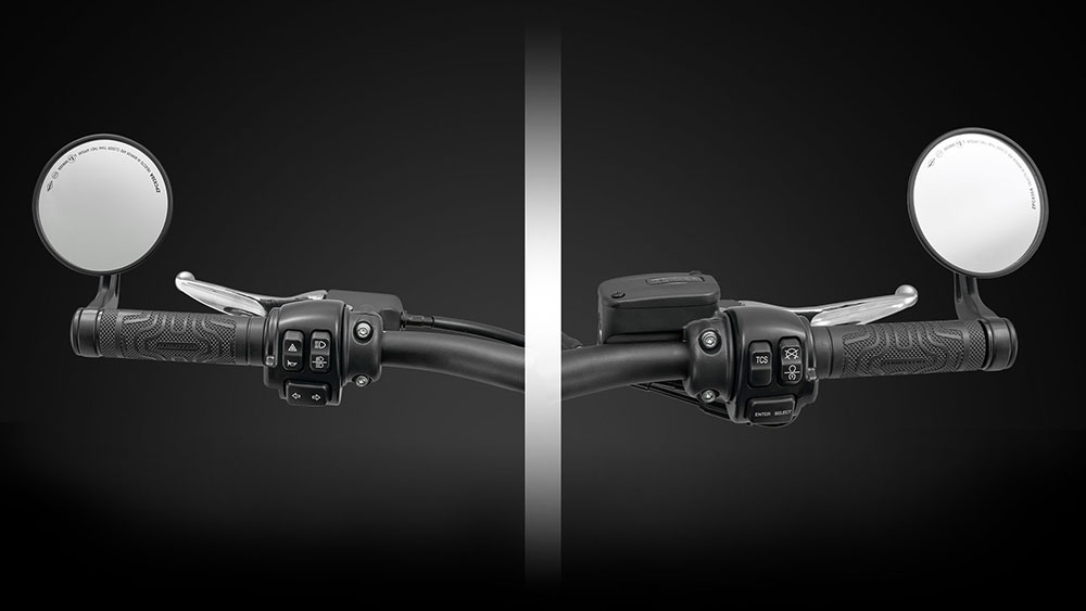 Στο τιμόνι, τα εργονομικά χειριστήρια επιτρέπουν εύκολη πρόσβαση σε όλες τις λειτουργίες, με ξεχωριστό διακόπτη για το TCS. Για μεγαλύτερη πρακτικότητα, υπάρχει διπλή θύρα USB (Type A & Type C) κοντά στο ρεζερβουάρ για φόρτιση συσκευών εν κινήσει.