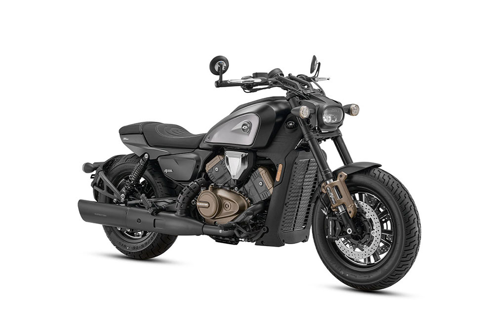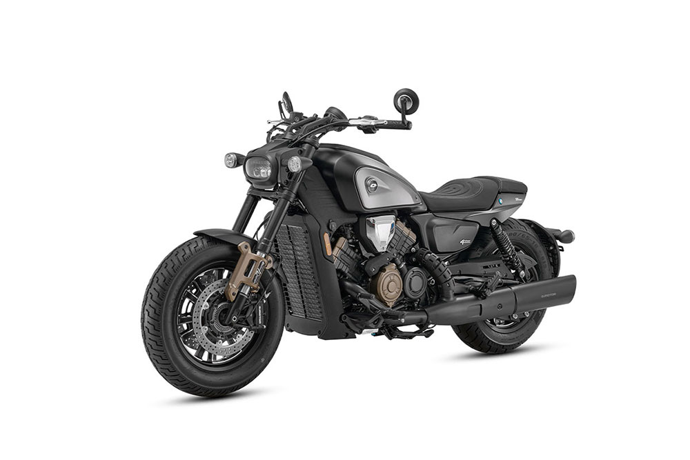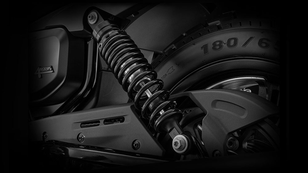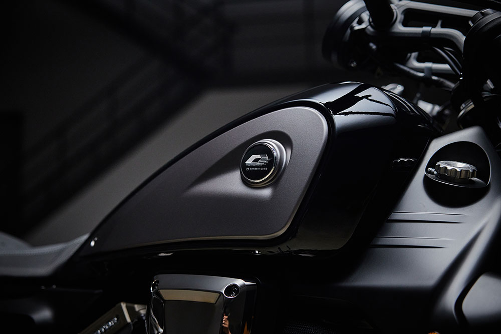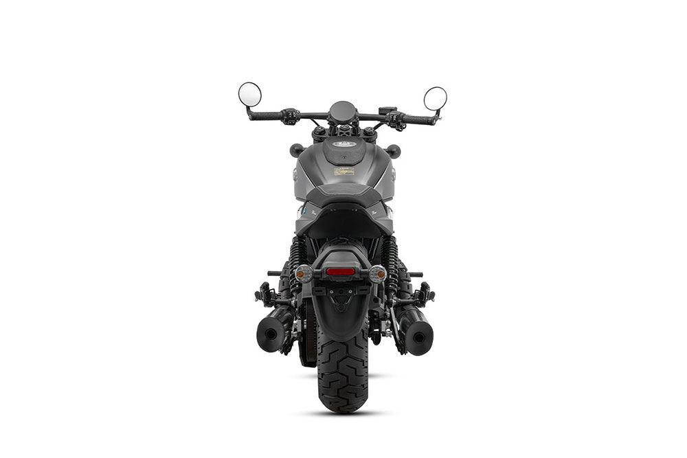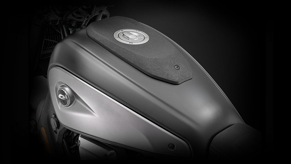 Η custom σέλα, συνδυάζοντας δύο υλικά με εμφανείς ραφές και ανάγλυφο σχέδιο, υπογραμμίζει την προσοχή στη λεπτομέρεια. Το ύψος σέλας 720 mm διευκολύνει την πρόσβαση στο έδαφος και προσφέρει άνετη θέση οδήγησης.