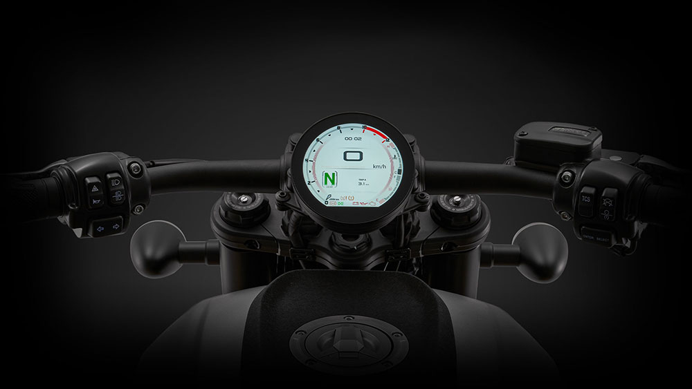 Η TFT στρογγυλή οθόνη συνδυάζει την κλασική αισθητική με τη σύγχρονη λειτουργικότητα. Προβάλλει καθαρά όλες τις πληροφορίες — ταχύτητα, στροφές, θερμοκρασία, στάθμη καυσίμου, ώρα — και υποστηρίζει Bluetooth & WiFi συνδεσιμότητα, ειδοποιήσεις κλήσεων, καθώς και πλοήγηση turn-by-turn μέσω εφαρμογής. Ενσωματώνει επίσης TPMS για συνεχή παρακολούθηση πίεσης και θερμοκρασίας ελαστικών.