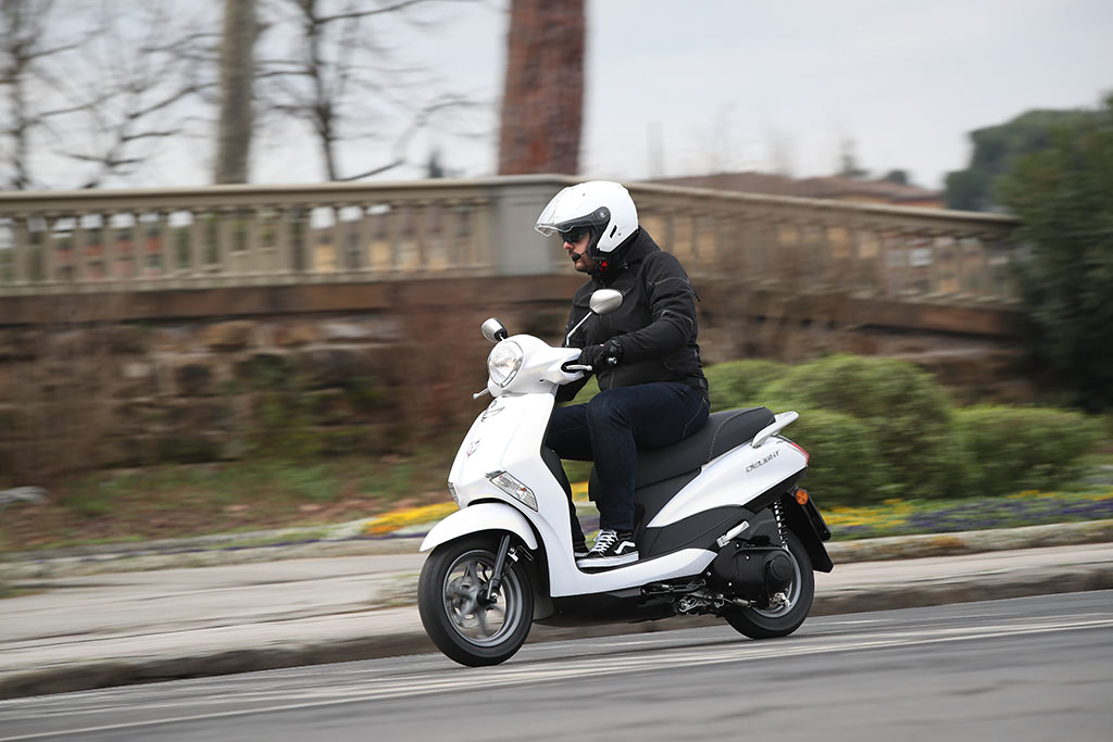 Από την άλλη το Delight είναι ένα μικρό σκούτερ με όμορφη σχεδίαση, τεράστιο χώρο αποθήκευσης κάτω από την σέλα, με κατανάλωση κάτω από 2 λίτρα, ελαφρύ (105 κιλά) και πολύ οικονομικό στην απόκτηση του, απευθύνεται σε νεαρούς αναβάτες και κυρίως γυναικείο κοινό θέλοντας να λύσει το πρόβλημα μετακίνησης με στυλ και άποψη!